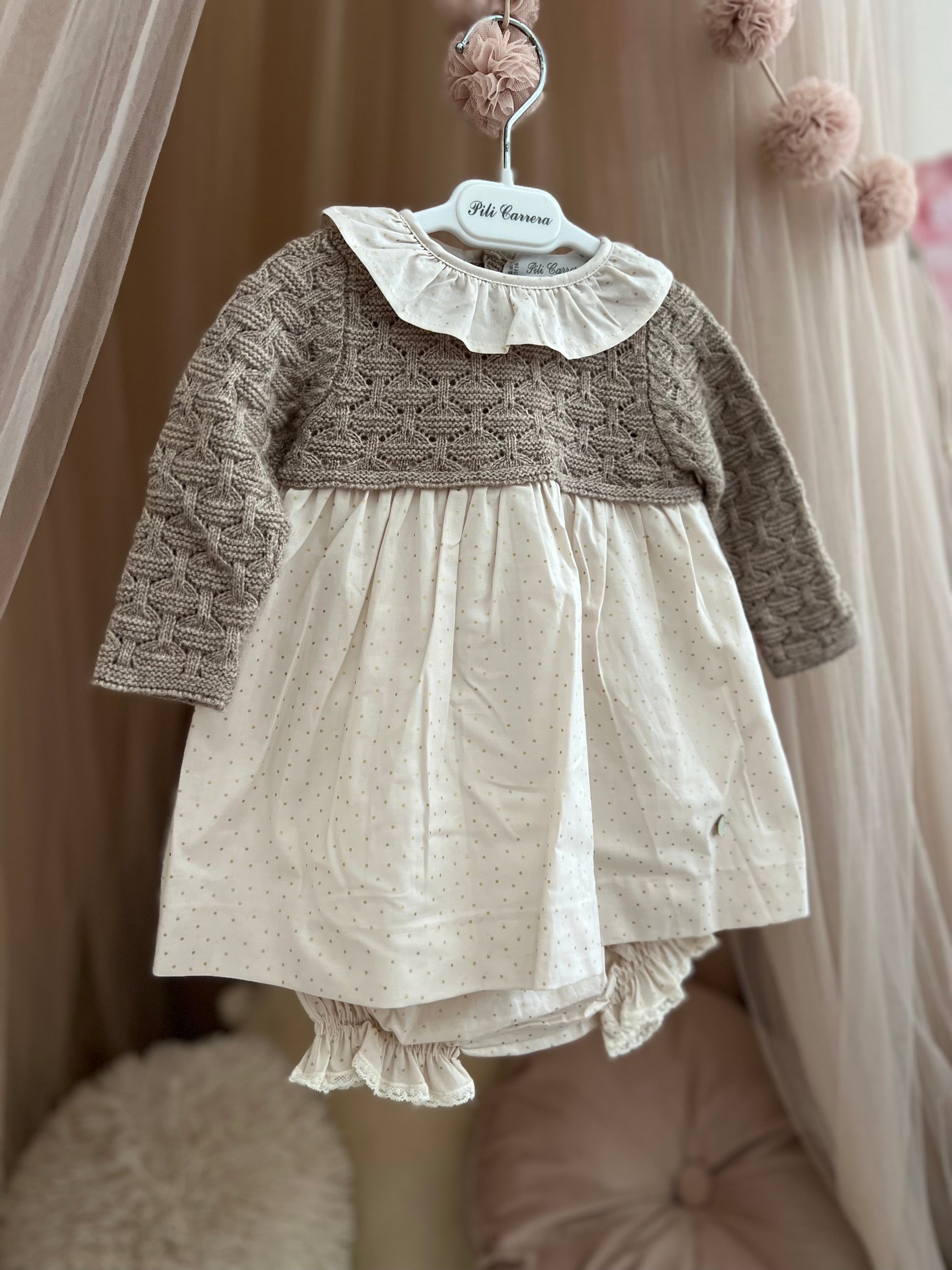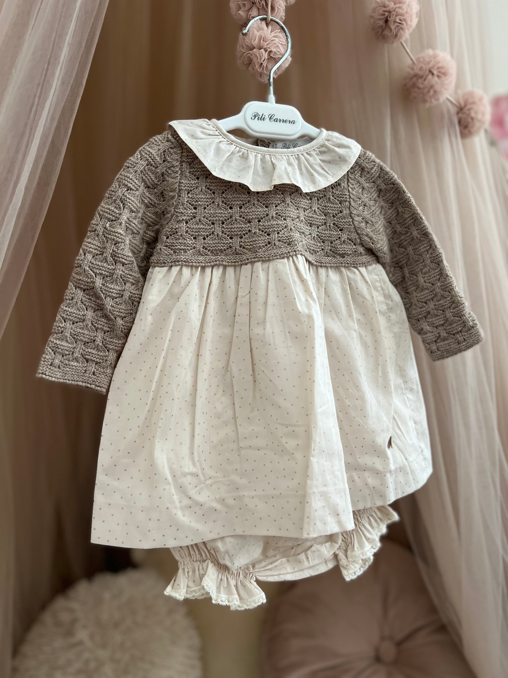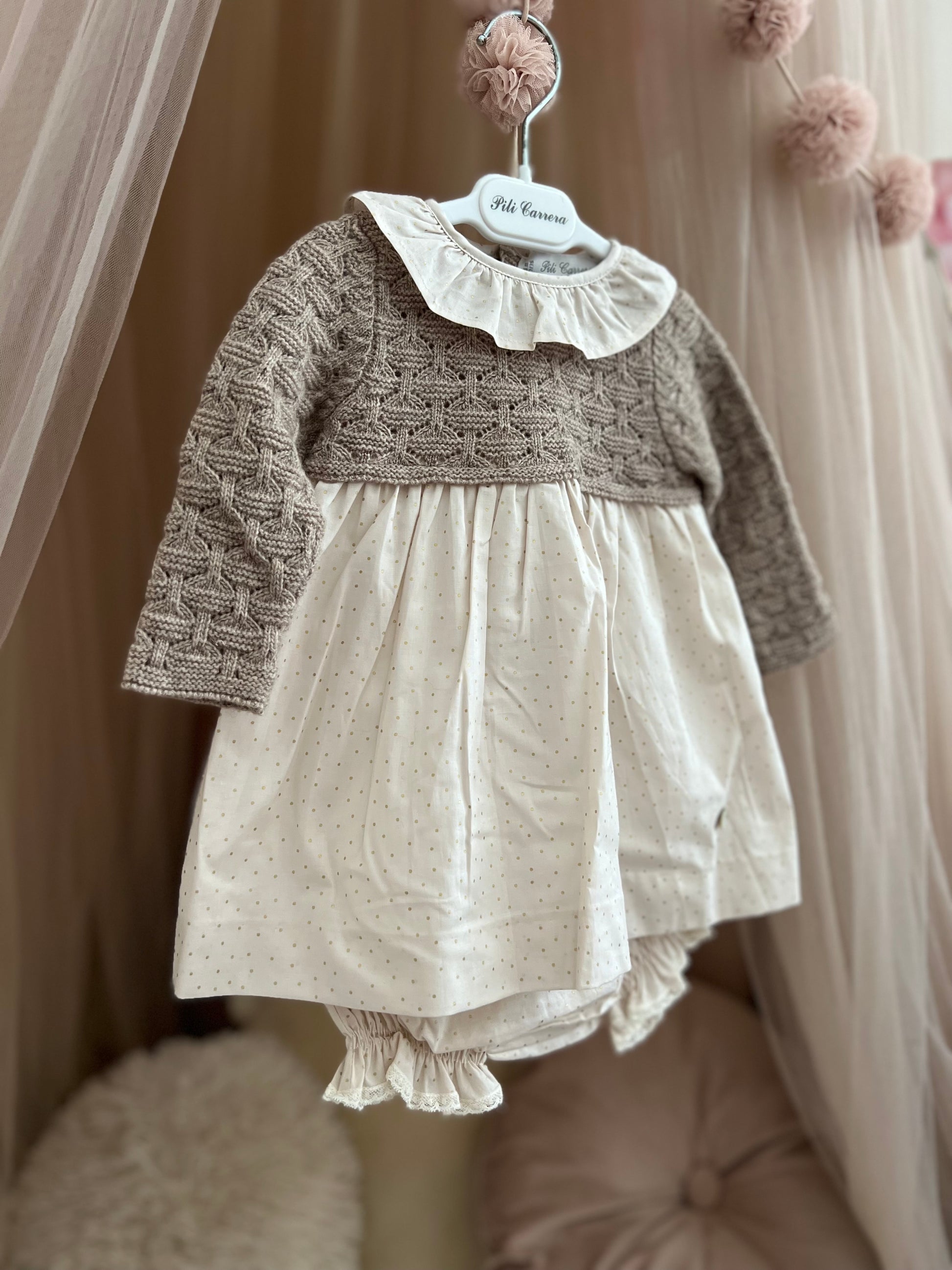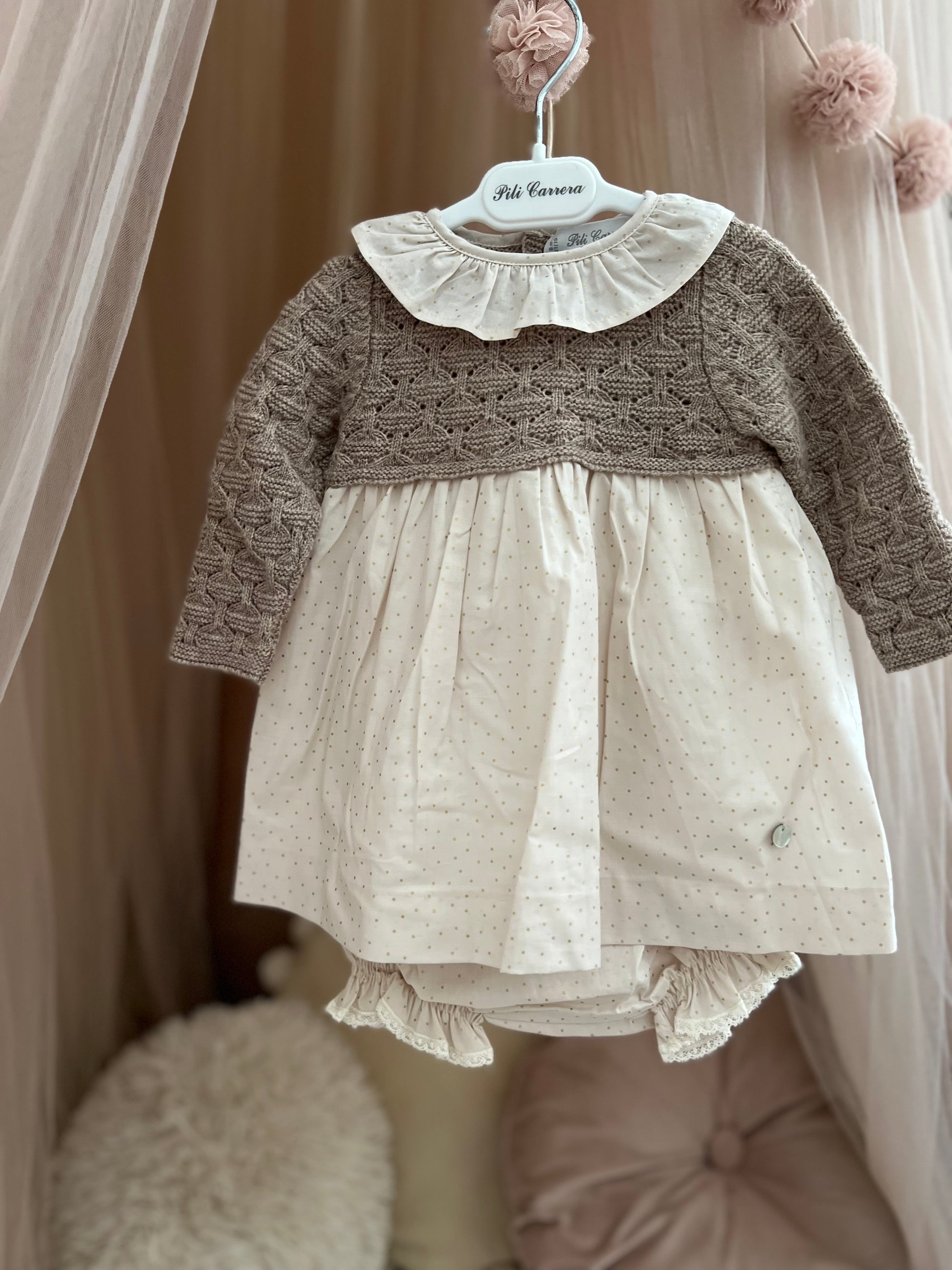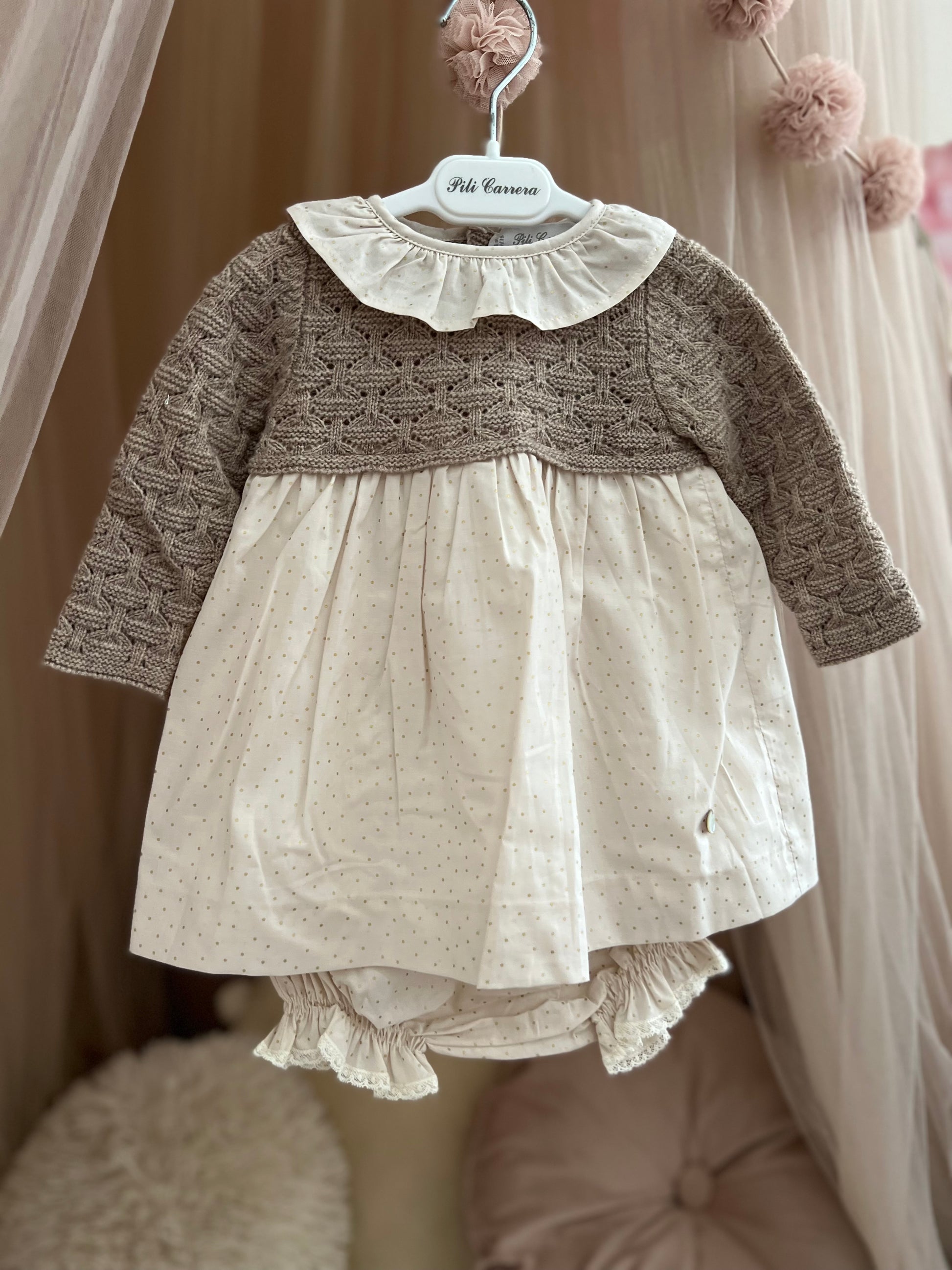 Fustan me pjese te trikotuar dhe pambuku