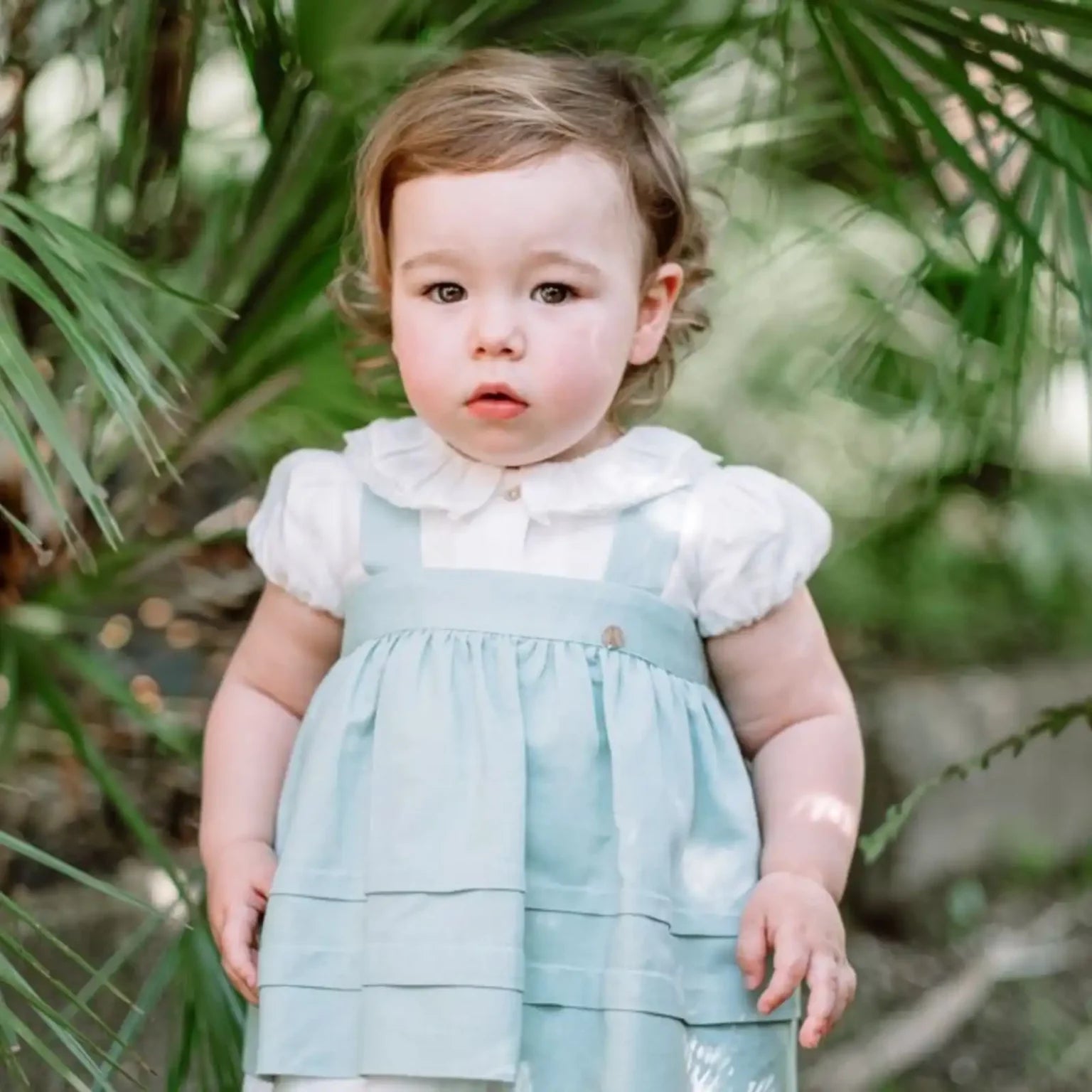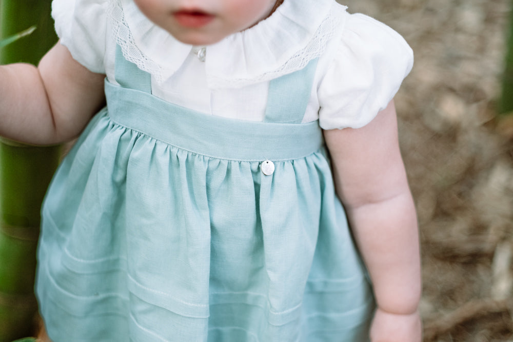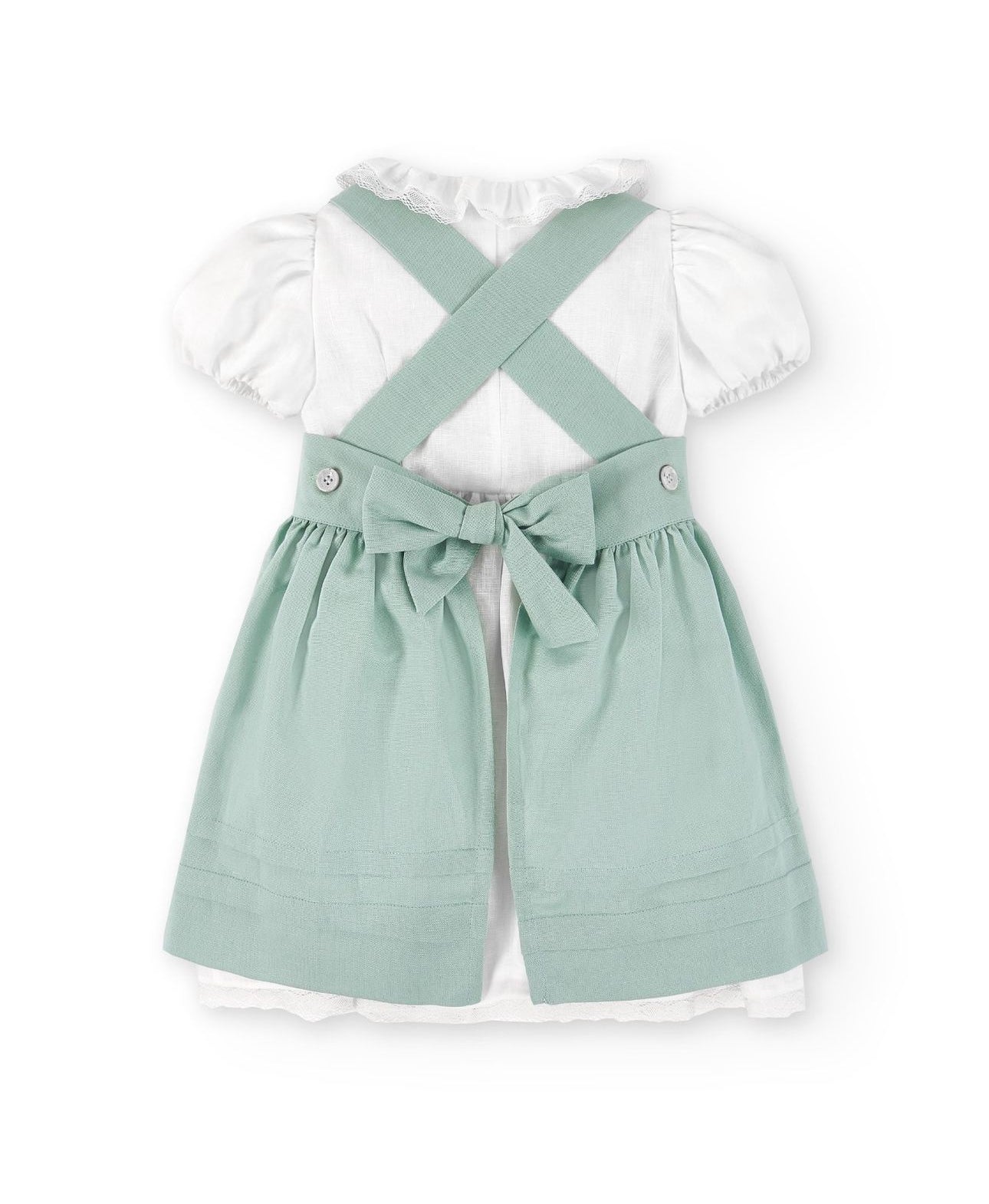Fustan lino me 2 pjese, fustan i bardhe dhe perparese e siperme jeshile lino! Vishen dhe veç secila
