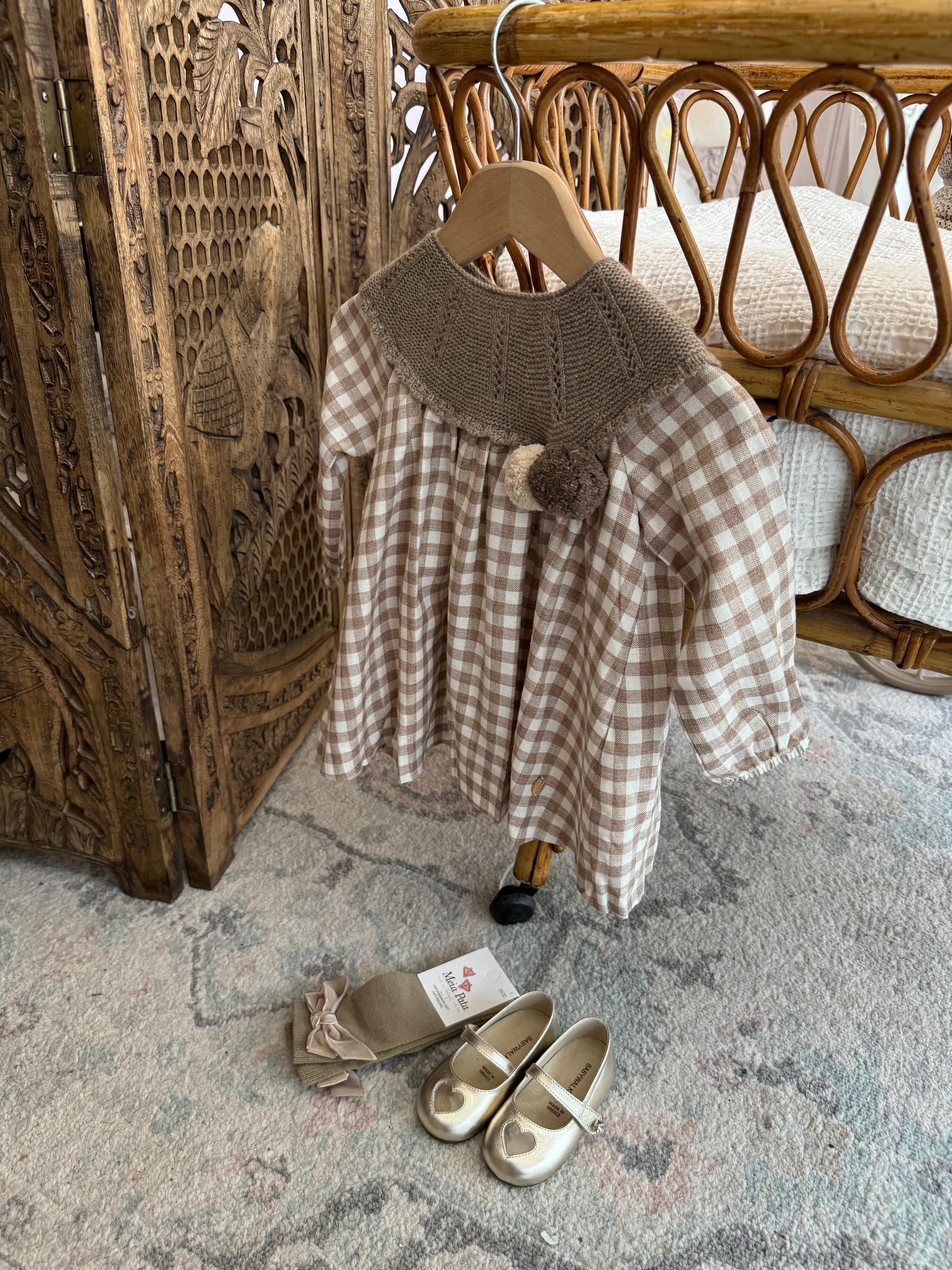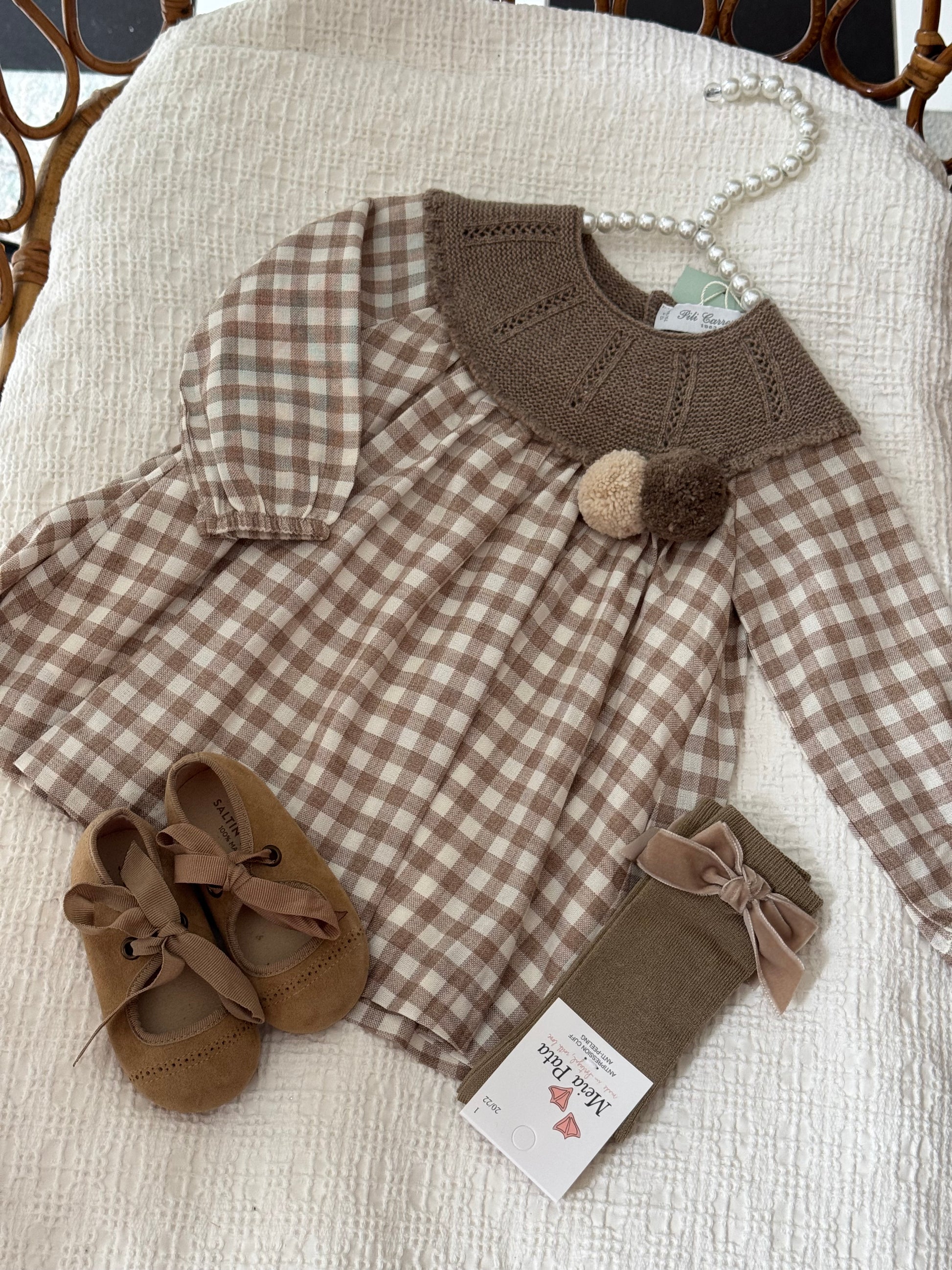 Fustan me ngjyra neutrale.