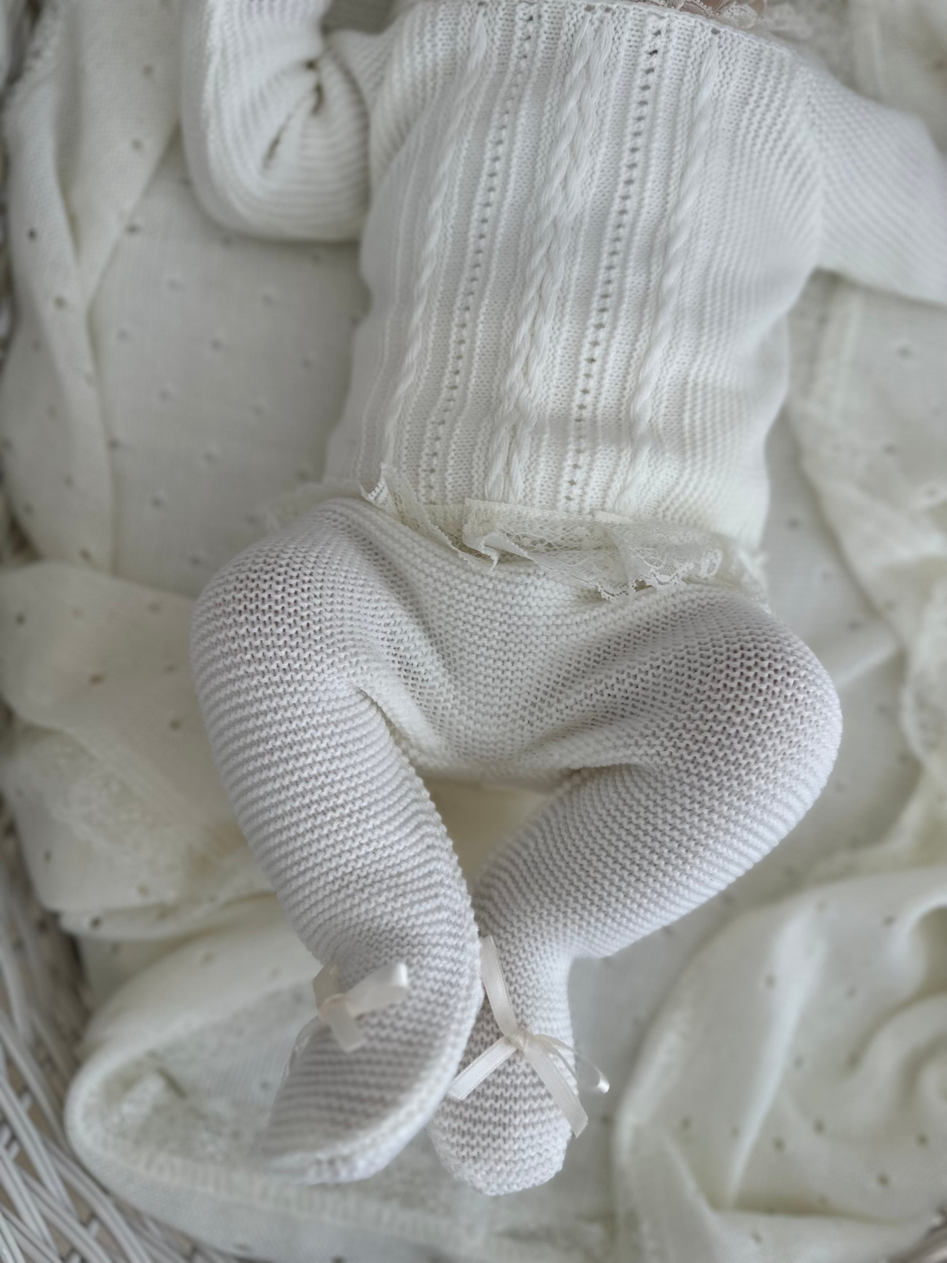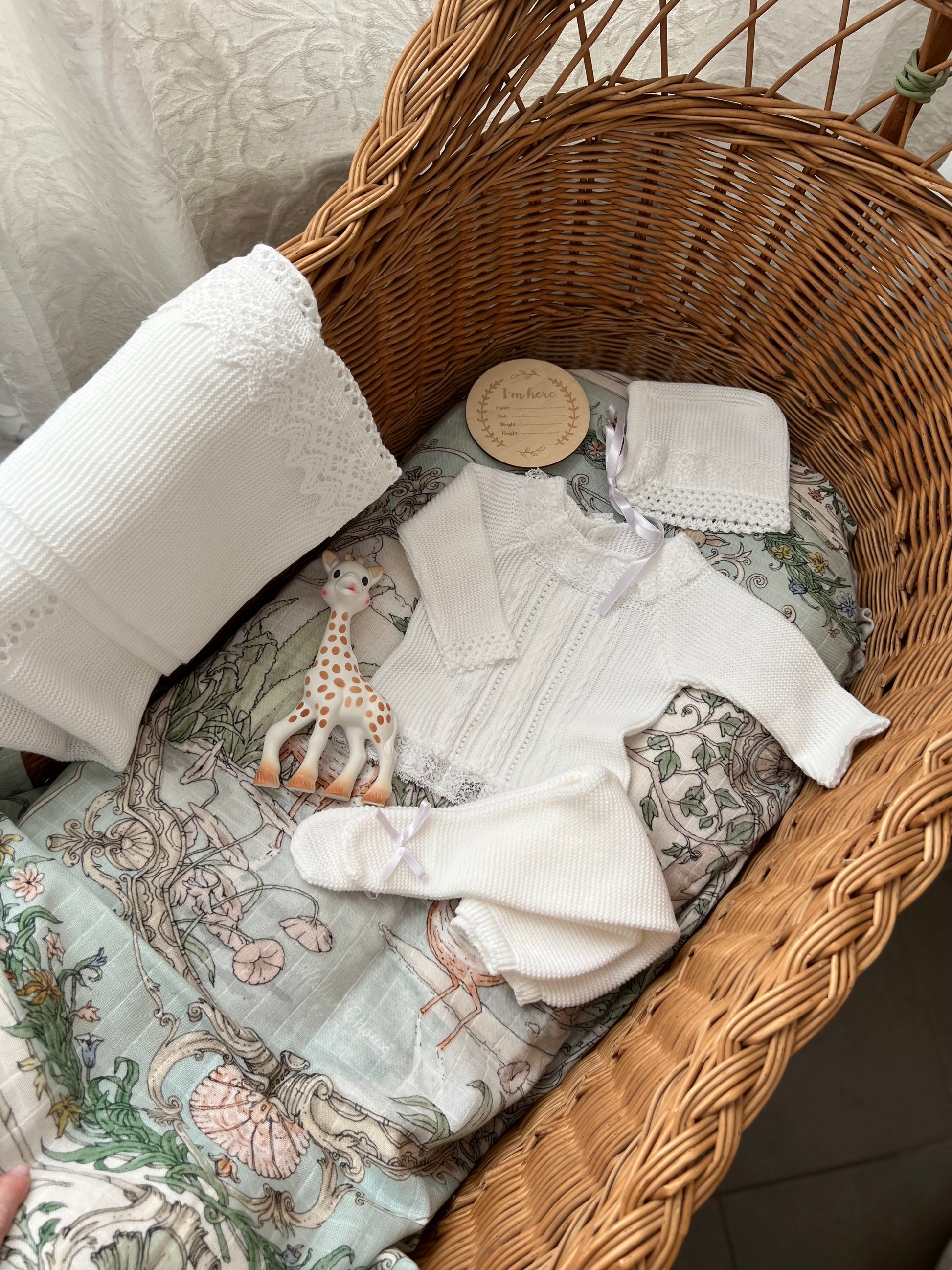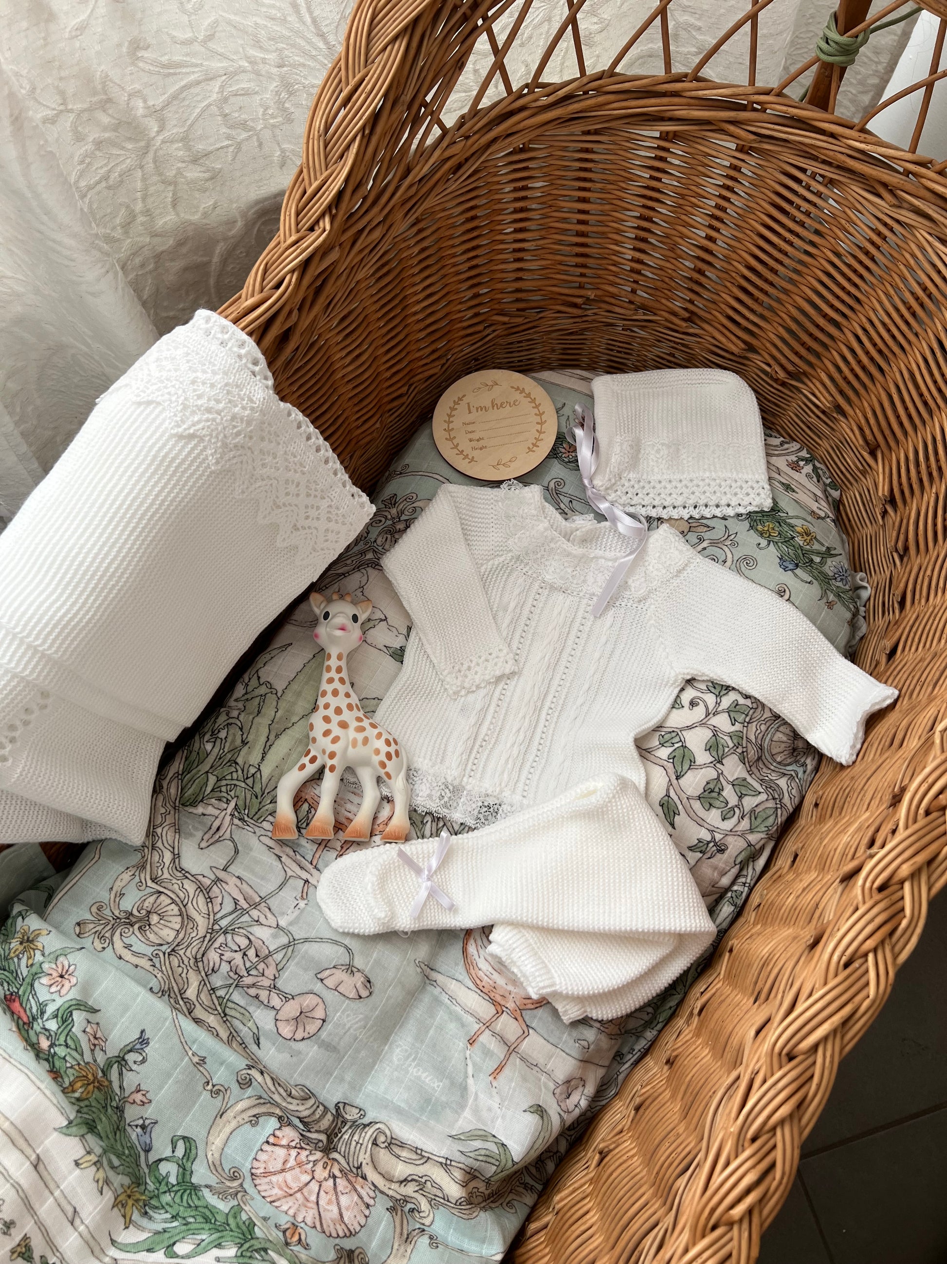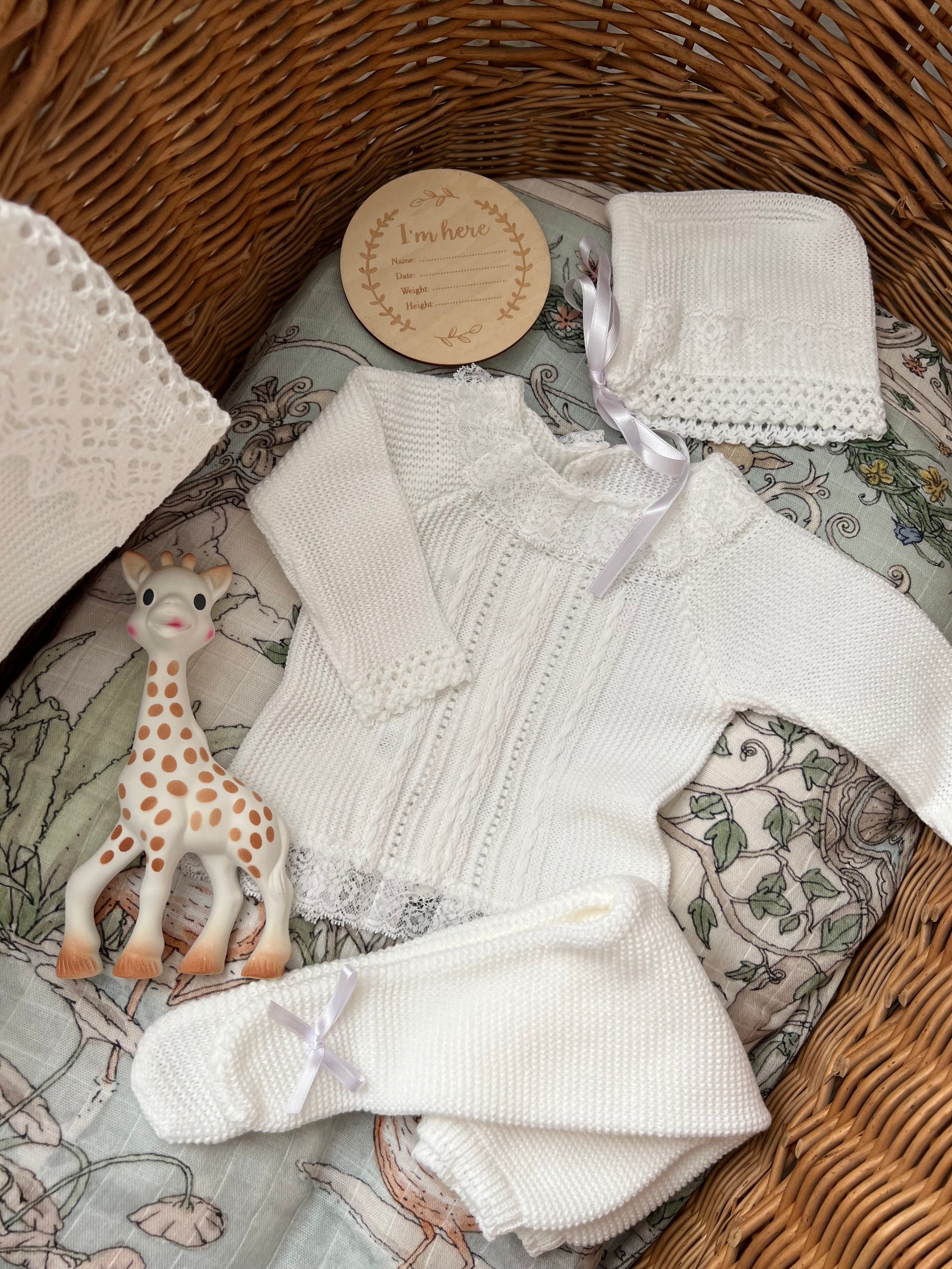 Set triko pantallona dhe kapuc, unisex.Me detaje tantelle dhe punim klasik.
